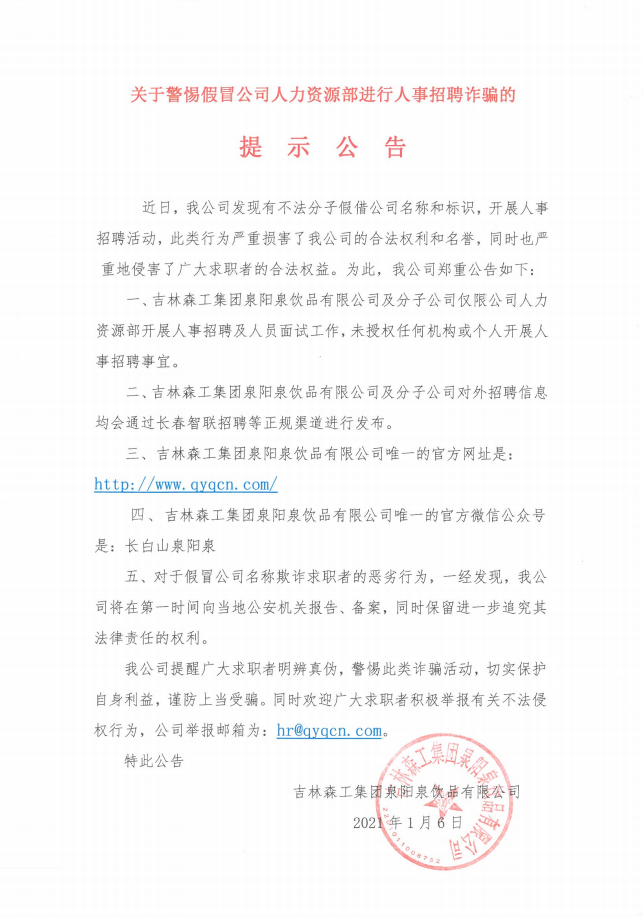 吉林森工集團(tuán)泉陽泉飲品有限公司