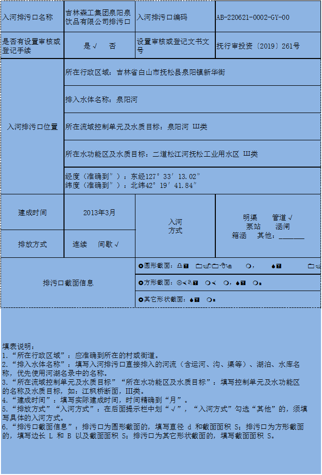 入河排污口基本信息表
